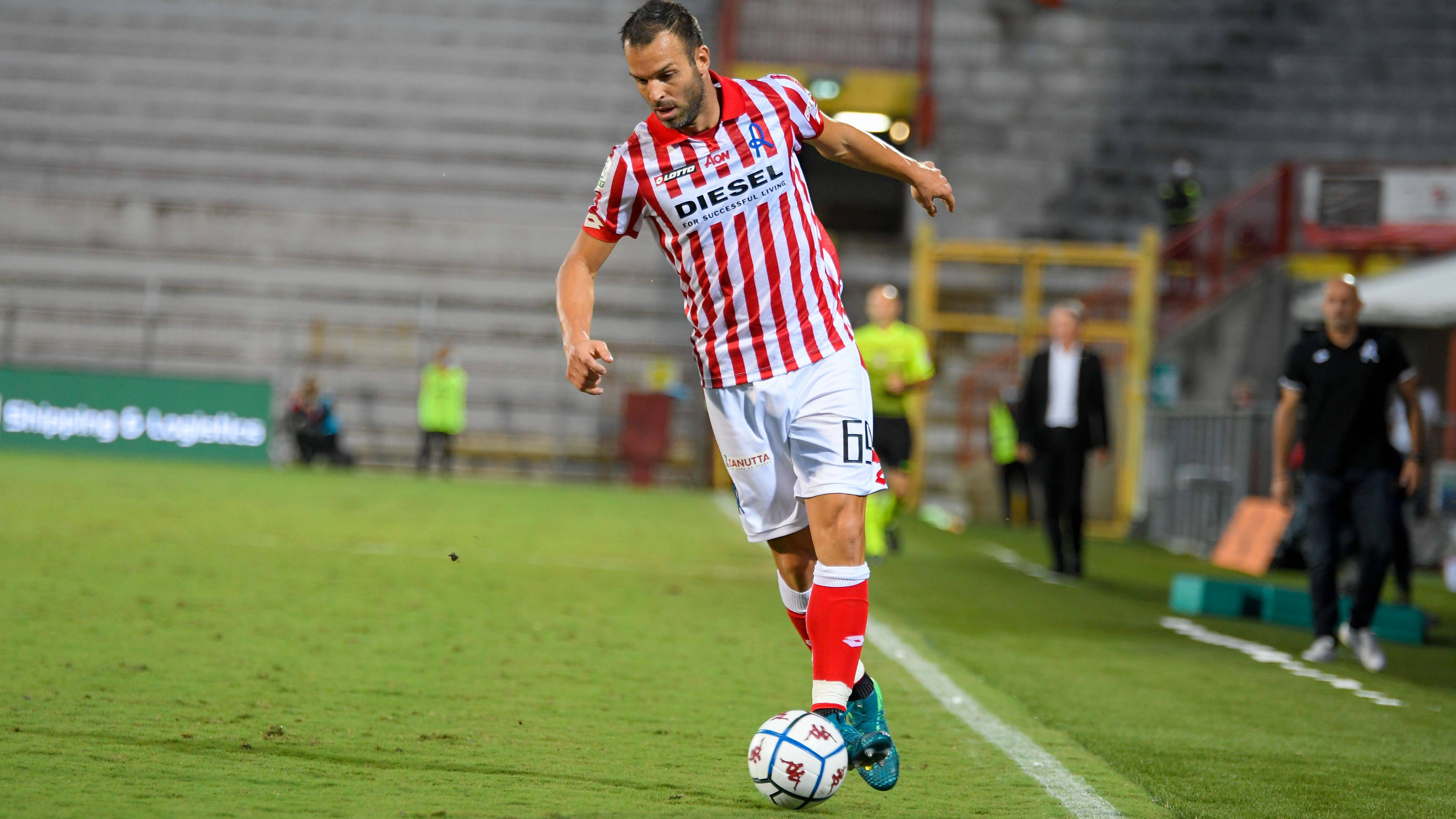 Samuele longo (vicenza) wins a free kick in the attacking half.