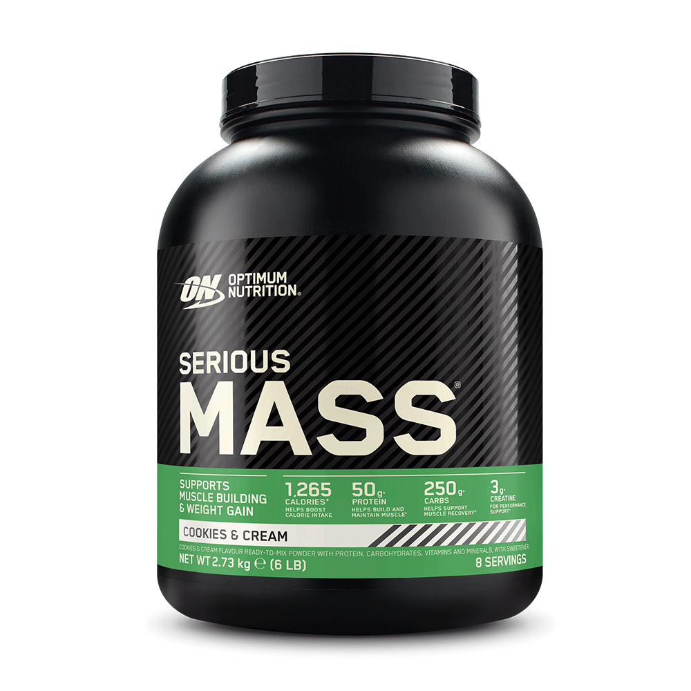 Optimum nutrition serious mass gainer powder packed with mass building.
